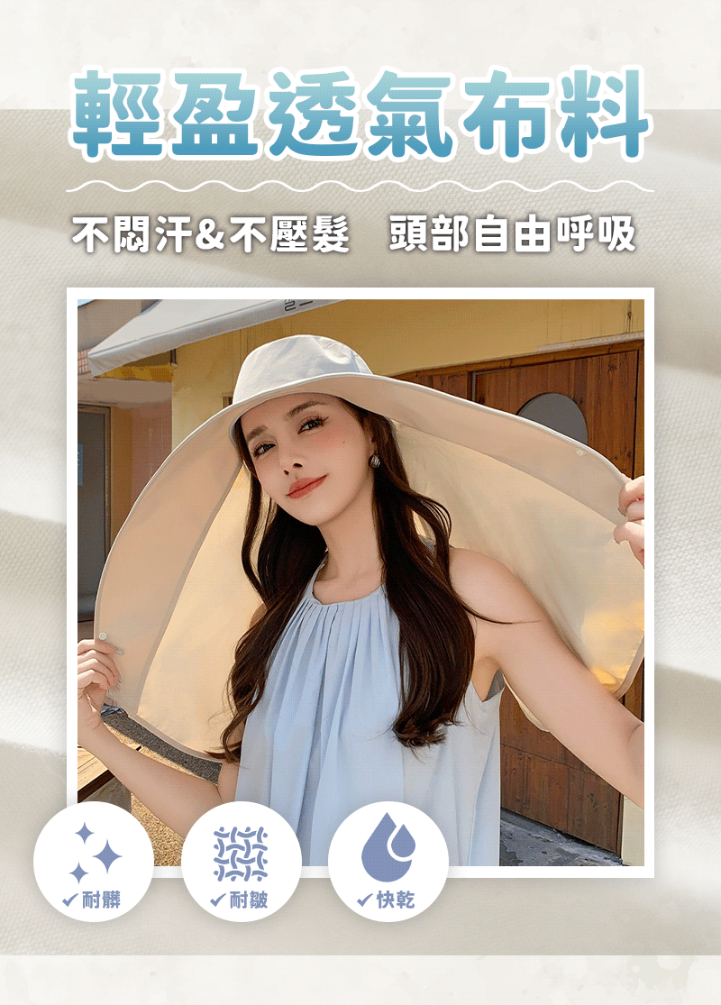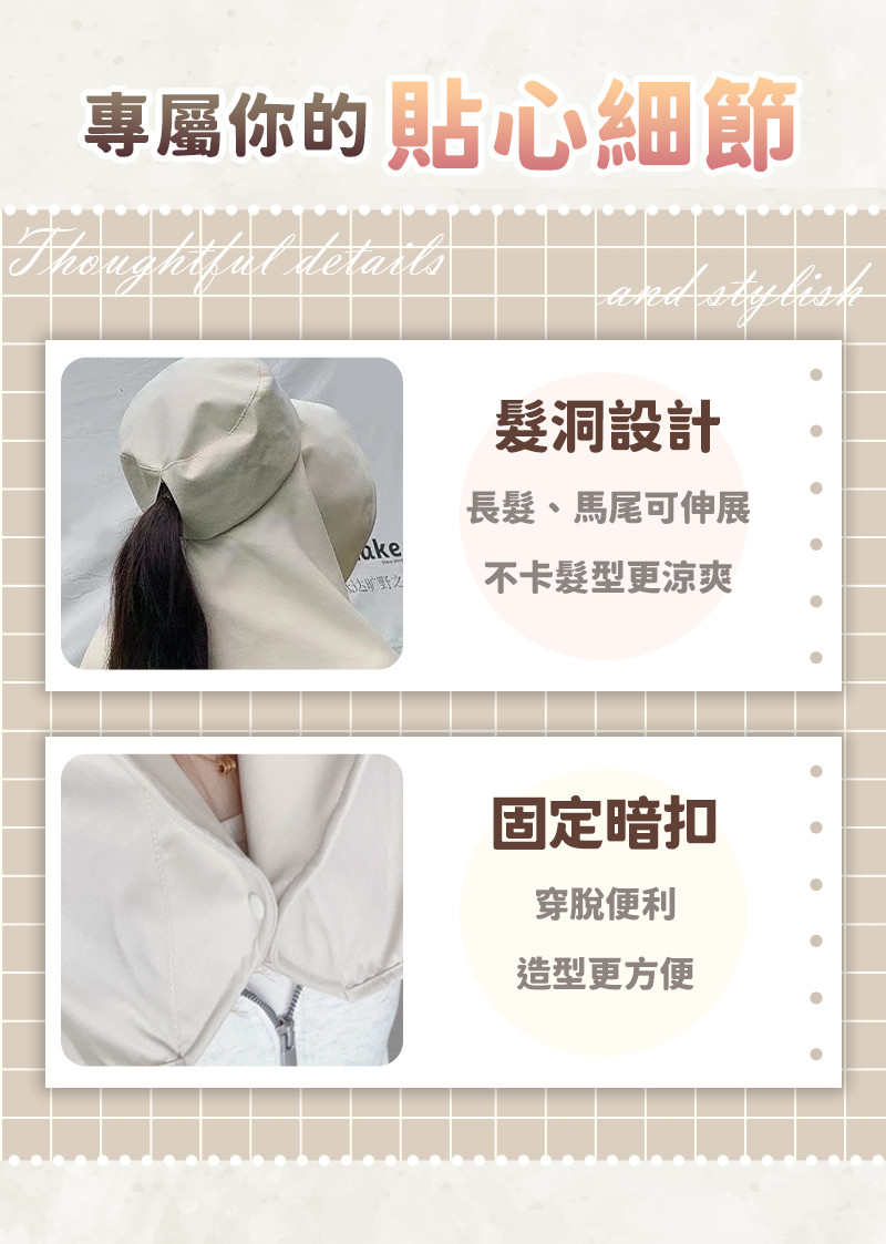 【夏季熱銷TOP1單品】 😍 披肩防曬帽讓妳美美登場 🫶一戴V臉,時尚完成度UP! 🫶加大帽簷,全面防護,拒絕色差! 🫶髮洞設計,髮型依舊完美! 🫶記憶帽簷,風格造型隨心變!
