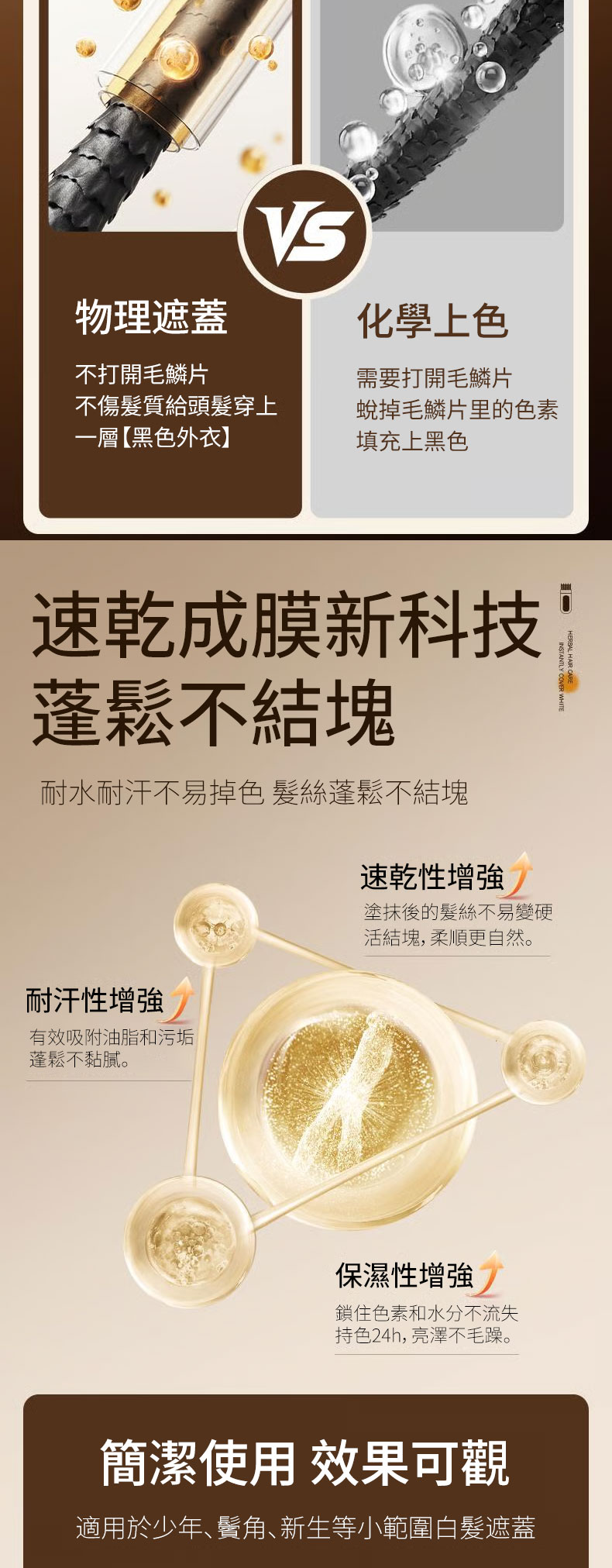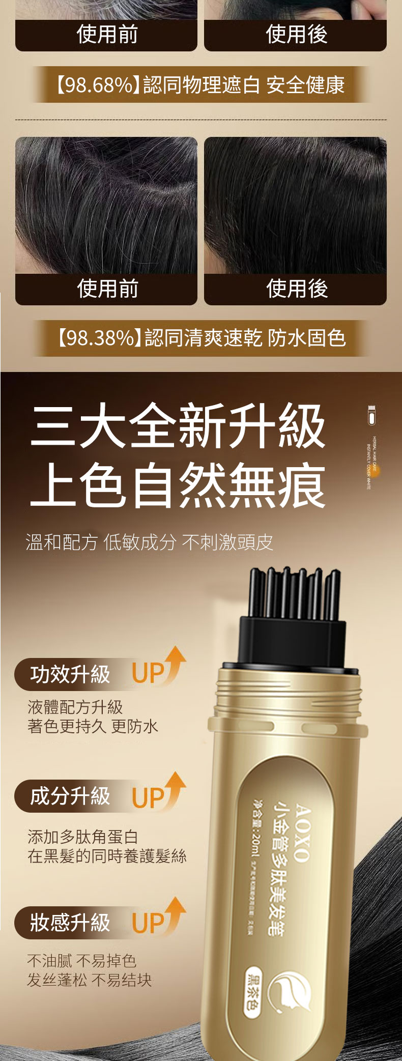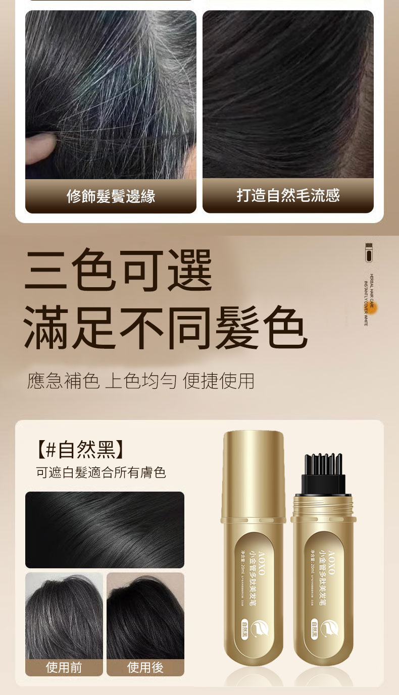 5分鐘前遮蓋白髮美髮棒🔥不傷頭皮,物理遮蓋,角蛋白奢護養髮,瞬間白髮變黑髮! - 單個僅需333!【3入組】NT$999